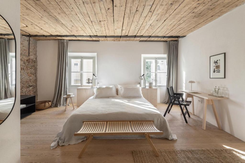 Yumuşak ahşap, keten ve yün tonlarında doğal malzemelerle döşenmiş otel, konuklarını dinlenmeye, kitap okumaya, yoga yapmaya veya sakin bahçede şarap keyfi yapmaya davet ediyor. Burada, fresklerle süslenmiş yemek salonundan zamanın durmuş gibi göründüğü huzurlu avluya kadar her ayrıntıda tarih canlanıyor.