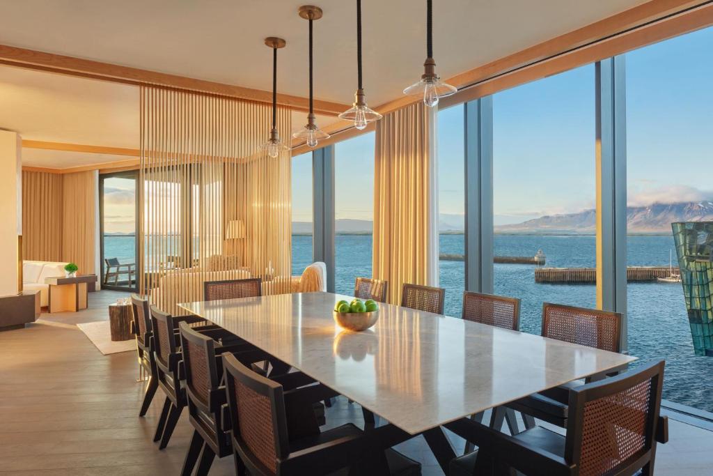 Roman and Williams tarafından tasarlanan otel, açık renkli ahşap ve yerel zanaatkarlık gibi İskandinav dokunuşlarıyla orta yüzyıl modern stilini yeniden yorumluyor. Mekanları, ince İzlanda etkileriyle kozmopolit bir hava sunarken, Michelin yıldızlı restoranı Tides ise yerel mutfağı ön plana çıkarıyor. İki zarif bar, hem konuklar hem de yerli halk için canlı bir buluşma noktası oluşturuyor.
